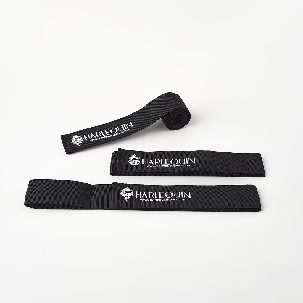 Harlequin vinyl floor roll straps are manufactured from heavy duty black webbing, with a secure Velcro fastening.